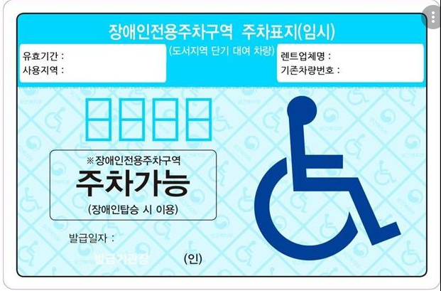장애인 전용 주차구역에 주차할 수 있는 임시 주차표지. 제주시 제공