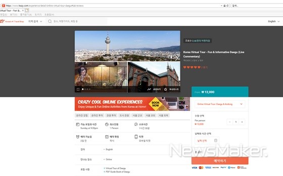 (뉴스메이커=이주현 기자) 대구시는 하나투어아이티씨(ITC)와 함께, 온라인 라이브(Live) 랜선투어상품*인 ‘대구 원데이(1day) 가상(Virtual)투어’, ‘대구 라이브(Live) 치킨투어’ 상품을 신규 개발해 오는 7월 17일(토)부터 라이브 랜선투어 상품 판매를 시작한다.