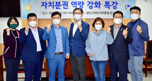 한편 광산구의회 자치분권연구회는 지방자치법 전부 개정에 따라 자치 분권 실현을 위한 광산형 주민 자치의 방향과 정책방안 제시를 연구 주제로 한다. 연구회엔 공병철·윤혜영·강장원·김영관·김태완·이귀순 의원이 활동하고 있다.