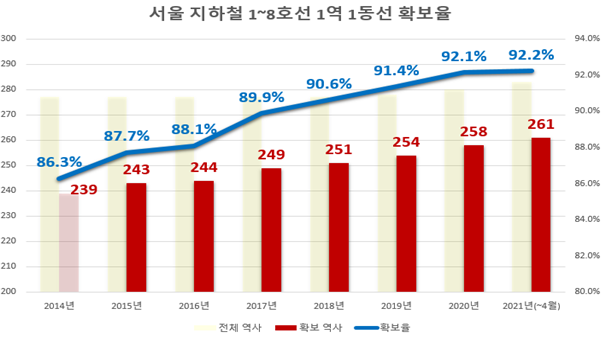 '1역1동선' 확보 엘리베이터 설치 최선… 현재 설치율 92.2%