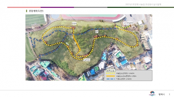 평택시는 2020년 한국산림복지진흥원이 주최한 녹색자금 공모사업에 선정돼 복권판매 수익금인 녹색기금 4억을 포함한 총 7억원을 투입해 소사벌 레포츠 숲에 무장애 나눔길 조성사업을 추진한다.(사진=평택시)