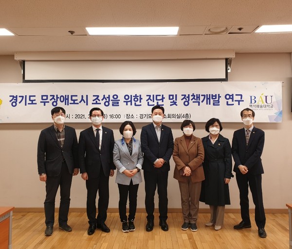 연구용역 착수보고회에는‘경기도의회 도민이 행복한 무장애도시 연구회’최종현 회장을 비롯해 권정선·박옥분·이필근·이애형 경기도의원, 조경선 경기도 장애인복지과 팀장, 김제선 교수(백석예술대 산학협력단) 등이 참석했다.