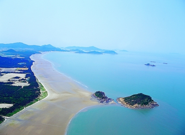 2020s년 노후시설 재생사업을 마무리한 신안군 임자도 대광해수욕장의 전경