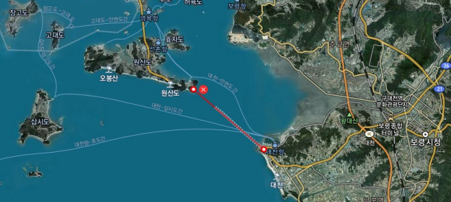 대천항과 원산도를 잇는 보령해저터널(붉은선) 현황, 올해 말 개통예정인 가운데 보령시의 행보가 바빠지고 있다 다음지도 캡쳐