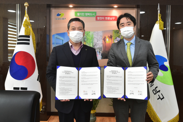 대구 남구청과 한국관광공사 대구·경북지사가 2021년 강소형 잠재관광지 발굴·육성사업에 최종 선정된 앞산 해넘이전망대 관광 활성화를 위한 업무 협약을 체결했다.