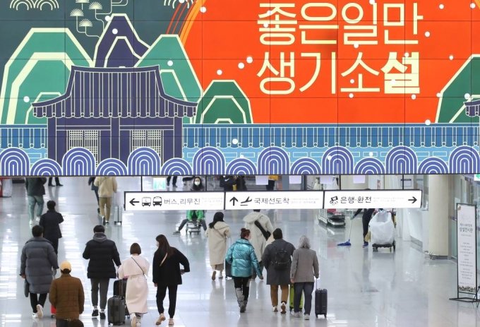 설 명절 연휴를 하루 앞둔 지난 10일 오전 제주국제공항 1층 도착장에서 관광객들이 렌터카 보관소로 이동하고 있다. /사진=뉴시스