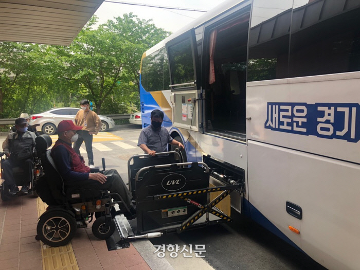 장애인들이 여행을 위해 경기여행누림버스를 타고 있다. |경기도 제공