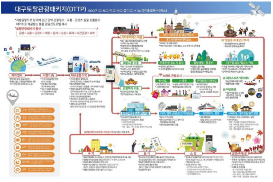 이에 정부는 이러한 문제들을 개선하고자 이번 ‘코리아토탈관광패키지’ 사업 공모를 진행했다. 이 사업을 통해 지방공항과 지역의 관광 거점도시, 지역 교통체계 등의 유기적 연계로 외래관광객에게 공항 입국부터 이동, 숙박, 볼거리, 먹거리 등 관련 관광 정보와 수단·콘텐츠를 동선에 따라 통합적으로 제공해 외래 관광객을 지역으로 분산시킬 수 있으며, 5G를 활용한 스마트 방식의 정보 제공으로 특정권역 내에서 다양한 관광 수요를 충족시킬 수 있다.