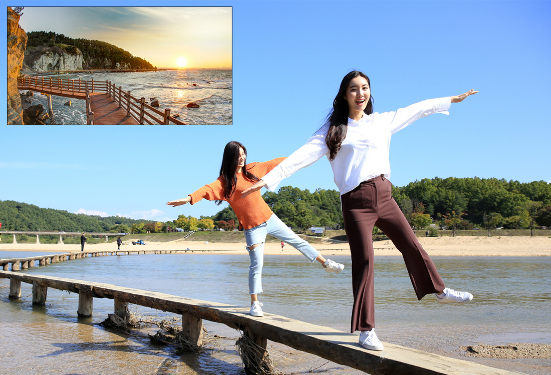 영주 무섬다리와 포항 호미반도 해안둘레길(작은 사진)이 코로나19를 피해 안전하고