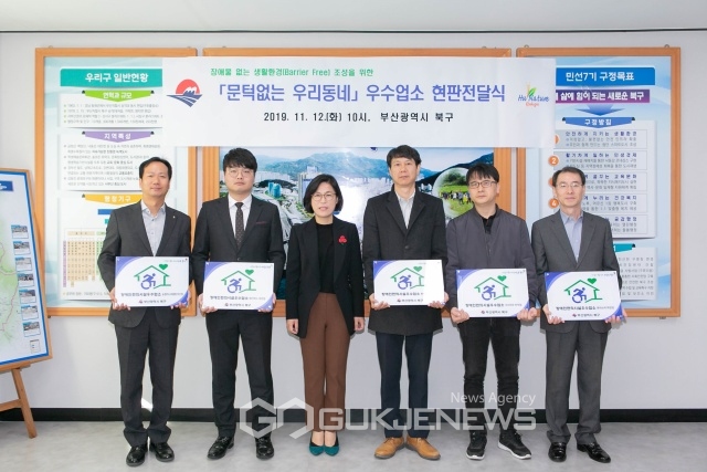부산 북구는 지난 12일 휠체어를 사용하는 중증 장애인 등이 안전하게 이용할 수 있는 장애인 편의시설 우수업소 5곳을 발굴해 현판 전달식을 가졌다고 18일 밝혔다.