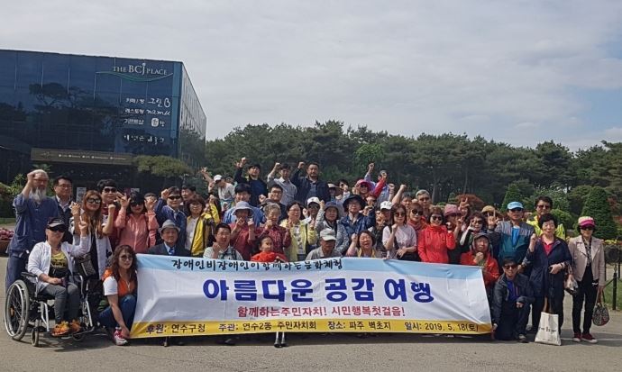 2019 연수구 행복마을만들기 지원사업의 일환으로, 혼자서는 여행을 할 수 없는 장애인, 홀몸어르신 등 교통약자를 대상으로 지역 주민들이 함께 문화체험을 진행함으로서 장애인식 개선은 물론 장애인·비장애인이 더불어 살아가는 따뜻하고 행복한 마을공동체 복원사업이다