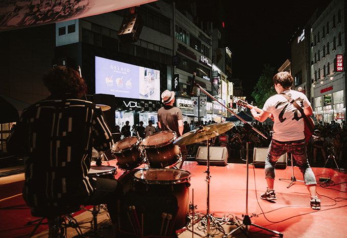지역 인디 뮤지션 공연을 볼 수 있는 ‘대구독립음악제’의 스트릿 어택 공연 장면. <인디053 제공>