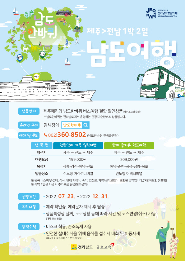 자세한 상품 안내는 남도한바퀴 누리집, 남도한바퀴 콜센터 남도한바퀴 카카오톡 채널에서 확인할 수 있다.