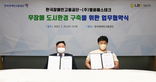 [컨슈머타임스 안우진 기자] 한국장애인고용공단(이사장 조향현, 이하 '공단')은 ㈜엘비에스테크(LBS tech,대표 이시완)와 7월 20일 무장애 도시환경 구축을 위한 업무협약을 체결했다.
