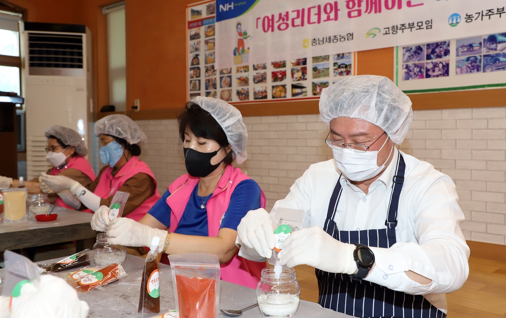 (서산=연합뉴스) 조성민 기자 = 충남세종농협(본부장 이종욱)은 농촌관광 활성화를 위해 20일 서산시 대산읍 회포팜스테이마을에서 고향주부모임충남도지회(회장 임춘숙)와 공동으로 '여성 리더와 함께하는 해피 팜 투게더' 농촌체험 관광을 진행했다.