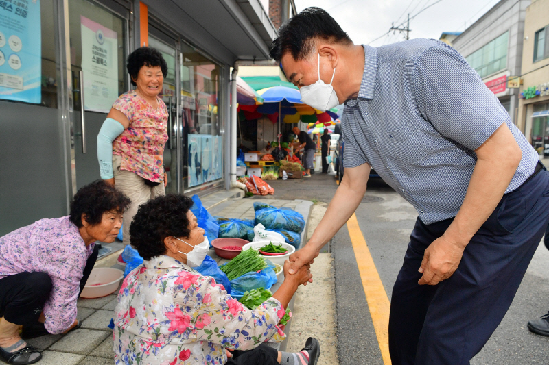 김한종 장성군수가 관계 공무원들과 함께 민생현장을 찾아 군민들과 대화를 나누고 있다.