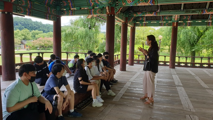 남원을 찾은 관광객들이 전문 유료 해설사로부터 관광지에 대한 설명을 듣고 있다. *재판매 및 DB 금지