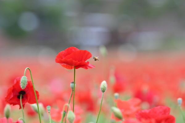 【브레이크뉴스 청송】이성현 기자=청송군(군수 윤경희) 주왕산면 하의리 주왕산관광단지에 꽃양귀비가 활짝 펴 붉은 물결의 장관을 이루며 관광객들을 반기고 있다.