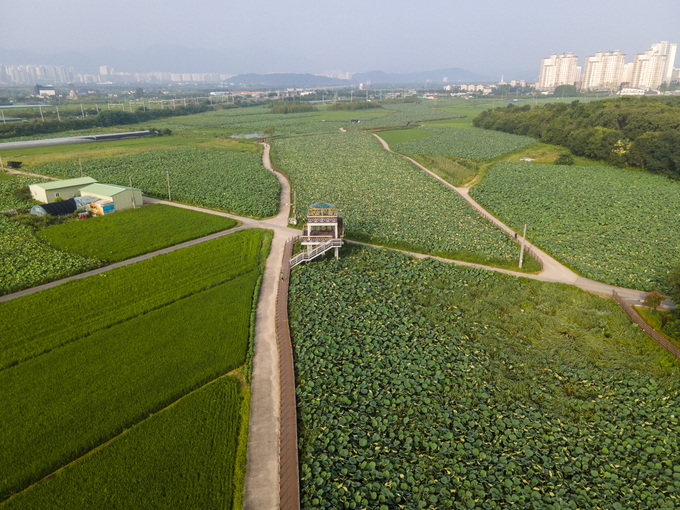 이에 따라 동구는 무더운 여름 더욱 장관을 이루는 연꽃단지를 여름철 대표 관광지로 적극 육성하기로 했다. 총거리 약 13㎞에 이르는 '생태탐방 데크길 산책로'를 활용해 무더위를 식히는 힐링 공간으로 만들기로 했다.
