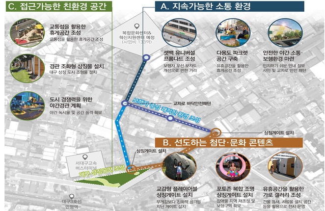 노후 산업단지 대개조 사업이 추진되는 대구 제 3산업단지(이하 3공단)내 옛 삼영초등 부지~도시철도 3호선 만평역 인근 도로 경관 디자인이 크게 개선될 전망이다.