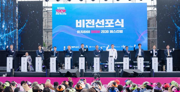 ㈜아트하랑은 최근 기장군 기장읍 당사리 쇼플렉스 건립 부지에서 시민을 대상으로 ‘유치하이 SHOW 2030 페스티벌’을 열고 비전 선포식(사진)을 가졌다고 7일 밝혔다. 이날 행사는 아트하랑이 2030 부산세계박람회 유치를 기원하는 뜻과 코로나19로 지친 시민을 위해 마련했다. 또 부산시와 문화예술계 인사들이 참석한 가운데 쇼플렉스 비전 선포식을 열었다.
