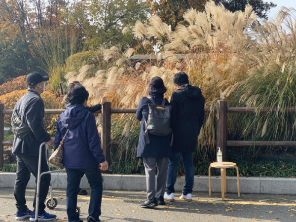 억새와 갈대의 차이점을 듣고 있다.(서울관광재단)
