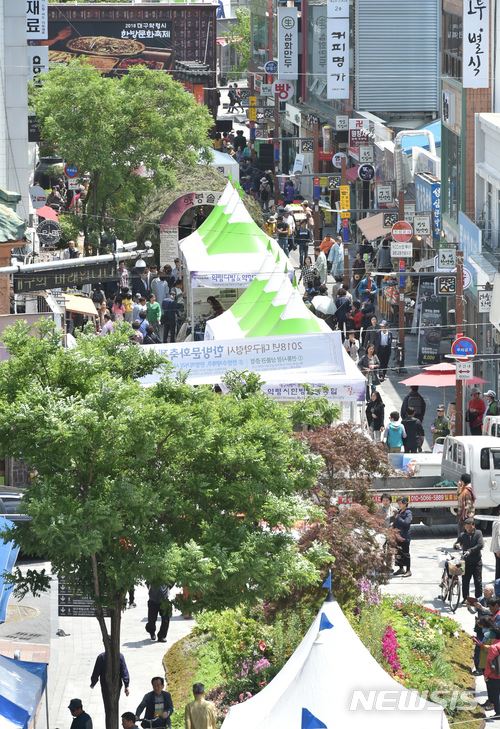 【대구=뉴시스】우종록 기자 = 대구 중구 남성로 약전골목에서 지난해 5월 3일 열린 제41회 대구약령시 한방문화축제 모습이다. 2019.08.16. wjr@newsis.com