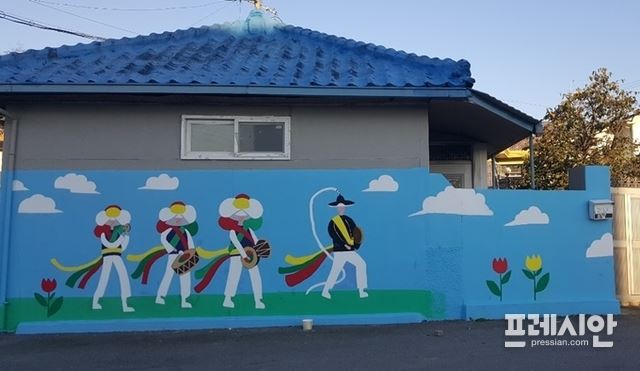 ▲ 서구 유덕동 주민들이 완성한 덕흥당산제 풍물놀이와 같은 지역성, 문화성을 반영한 벽화 ⓒ 정인서 기자